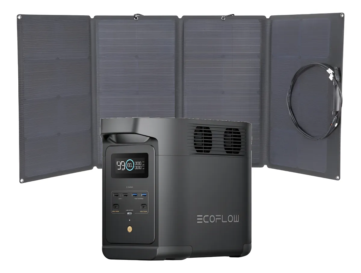 Painel solar dobrável de 160W incluso, com eficiência de até 23% e proteção IP68.